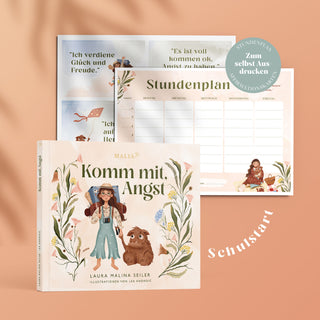 Bereite deinem Kind einen zauberhaften Start ins neue Schuljahr mit unserem liebevoll zusammengestellten Schulstart-Bundle. Das Bundle enthält das Kinderbuch "Komm mit, Angst", einen praktischen Stundenplan A4 und stärkende Affirmationen zum selbst ausdrucken, die deinem Kind helfen, die täglichen Herausforderungen mit Zuversicht zu meistern.